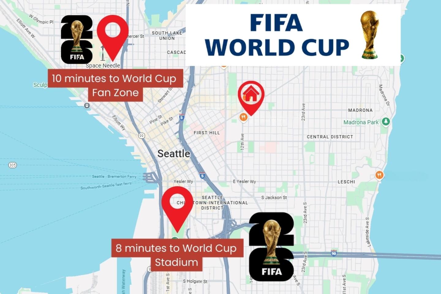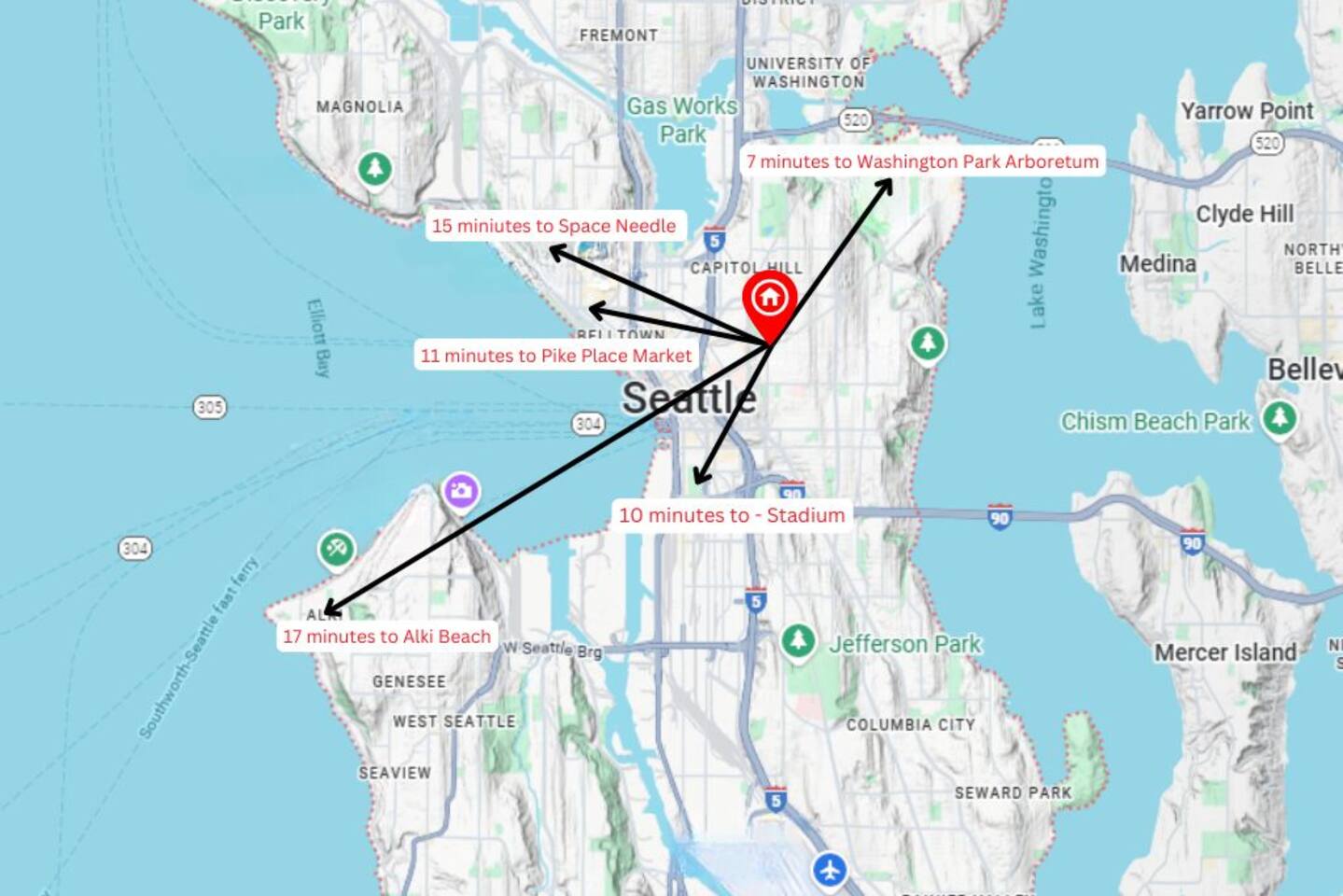 Step into this stunning 5-story townhouse where modern design meets Capitol Hill charm. Just 10 minutes from the iconic Space Needle, this unique retreat offers 3 bedrooms, 3 bathrooms, and a game area that transforms evenings into unforgettable experiences. The crown jewel - A loft area where you and your guests can gather with drinks in hand, taking in sweeping Seattle skyline views. Looking for a place during the World Cup 2026? Our townhouse is perfectly positioned just 8 minutes from the stadium and 10 minutes from the Seattle Center fan zone. Whether you're catching matches at the stadium or soaking up the atmosphere at the fan zone, getting there is quick and convenient. >> Please note that this home has no parking due to its location downtown, there is street parking available on surrounding streets. This townhouse also has multiple flights(4) of stairs between floors and the rooftop level. Guests who stay here should expect a vertical layout. The neighborhood is one of Seattle’s busiest nightlife districts, and the energy runs late into the night with bars, music, and street activity. If you are looking for a quiet environment, this is not the right fit. If you want to be in the center of the action with restaurants, clubs, live music, and downtown within minutes, this home delivers the full Capitol Hill experience. << Wake up to stunning Seattle views from your private balcony and spend your days exploring one of the city's most vibrant neighborhoods. Challenge friends to a game on the arcade machine in the loft area, then grab a drink from the convenient coffee and bar station before heading out to the balcony to soak in the panoramic Seattle skyline. The thoughtfully designed interiors blend style with comfort, giving you all the space you need to unwind after a day of urban adventures. Whether you're here for the sights, the food scene, or simply to experience Seattle's energy, this townhouse puts you right in the heart of it all. Book now and discover why Capitol Hill is the neighborhood everyone's talking about. Recharge and stay active during your stay with our dedicated small wellness corner, featuring a set of matching fitness equipment including 5 lb dumbbells, an 8 lb toning ball, and a Pilates ring. >> THE NEIGHBORHOOD << 99 Walk Score - Walking distance to... ✦ Coffee shops like Anchorhead Coffee, Tailwind Café, Wunderground Coffee, and more ✦ Grocery Stores- PCC Community Markets, Trader Joe's, and QFC ✦ 2-minute walk to the E Union St Bus Stop ✦ 3-minute walk to the bars like Canon, Elysian Capitol Hill Brewery, Tavern Law, and more ✦ 5-minute walk to restaurants like 8 Ping Yang, Rhein Haus, Grain House, and more >> THE HOME << 5-story modern townhouse with keyless entry and free street parking in Capitol Hill. Public transportation is conveniently located nearby for easy access around the city. The kitchen and living room are on the 2nd Floor, perfect for gathering and meals. Bedrooms and bathrooms are thoughtfully distributed across the Main level, 3rd, and 4th floors for privacy and comfort. The 5th-floor loft area features a game room and coffee/bar station, plus a balcony with stunning Seattle skyline views. Soaps and lotions are provided at no cost - They're free of parabens, sulfates, toxic chemicals, and unnecessary additives — pure and simple. >Seattle's modest size means that you might catch the sounds of airplanes flying overhead, regardless of your specific location in the city.<< >This is a townhouse with 4 Flights of stairs to the loft area -you will get a workout in.<< KITCHEN Premium Appliances ✦Fully Stocked with pots/pans ✦Full plateware with Large/Small plates and bowls ✦Glassware includes wine glasses, rocks glasses and tall drink glasses ✦Drip Coffee ✦K-Cup with Complimentary Coffee! ✦Tea Assortment Living Room ✦65" Smart TV(please note that it is NOT a cable TV) ✦Roku 4K ✦Table for up to 6 seating ✦High-speed WIFI (up to 500mbps) < LAYOUT OF OUR HOME >> >>Note: you will need to climb stairs - there are 5 flights of stairs< 1st Floor: - Bedroom #1 - Bunk Bed - Full Bathroom with Tub Shower 2nd Floor: - Kitchen - Living room - Bed pullout couch 3rd floor: - Desk - Bedroom #2 - Queen Bed - Full Bathroom with Tub Shower - Washer/Dryer 4th floor: -Master Bedroom #3 - King Bed with ensuite full bathroom - Large Closet Loft Area ✦ Wet Bar Station with mini Fridge ✦ DeLonghi Espresso ✦ Arcades Game Area ✦ 50" Roku TV ✦ Balcony with outdoor seating >>HOUSE GUIDELINES << >Rental Agreement The rental agreement must be signed before your arrival. >>AGE REQUIREMENT<< The minimum renter age is 25 years old for our property. To comply with our renter's insurance, the primary guest who made the booking is required to sign the rental agreement and send a photo of a valid government-issued ID before the check-in date. This will help ensure a smooth check-in and verify your reservation. >SAME DAY BOOKINGS < We're thrilled to welcome same-day I bookings! Just reach out to us in advance to confirm the available check-in time for such bookings. Should you make a reservation within 24 hours of your intended check-in, please be aware that a 4 pm check-in may not be guaranteed due to our cleaning team's schedule and potential same-day turnovers. In such cases, the check-in time could be delayed until 6:30 pm. We recommend reaching out to us post-booking to confirm your specific check-in time. >ARRIVAL & DEPARTURE TIMES < Check-in is at 4 pm, and check-out is by 10 am. While early check-ins can't be guaranteed due to potential same-day check-outs, we'll inform you on the day if it's possible. Please note that a $100 fee applies for early check-in or late check-out, subject to availability. >SHOE-FREE ZONE < As you step inside, kindly remove your shoes to help maintain the pristine condition of our home. We appreciate your care! >NO SMOKING POLICY < For the comfort of all guests, Smoking/Vaping or e-Cigarettes is strictly p