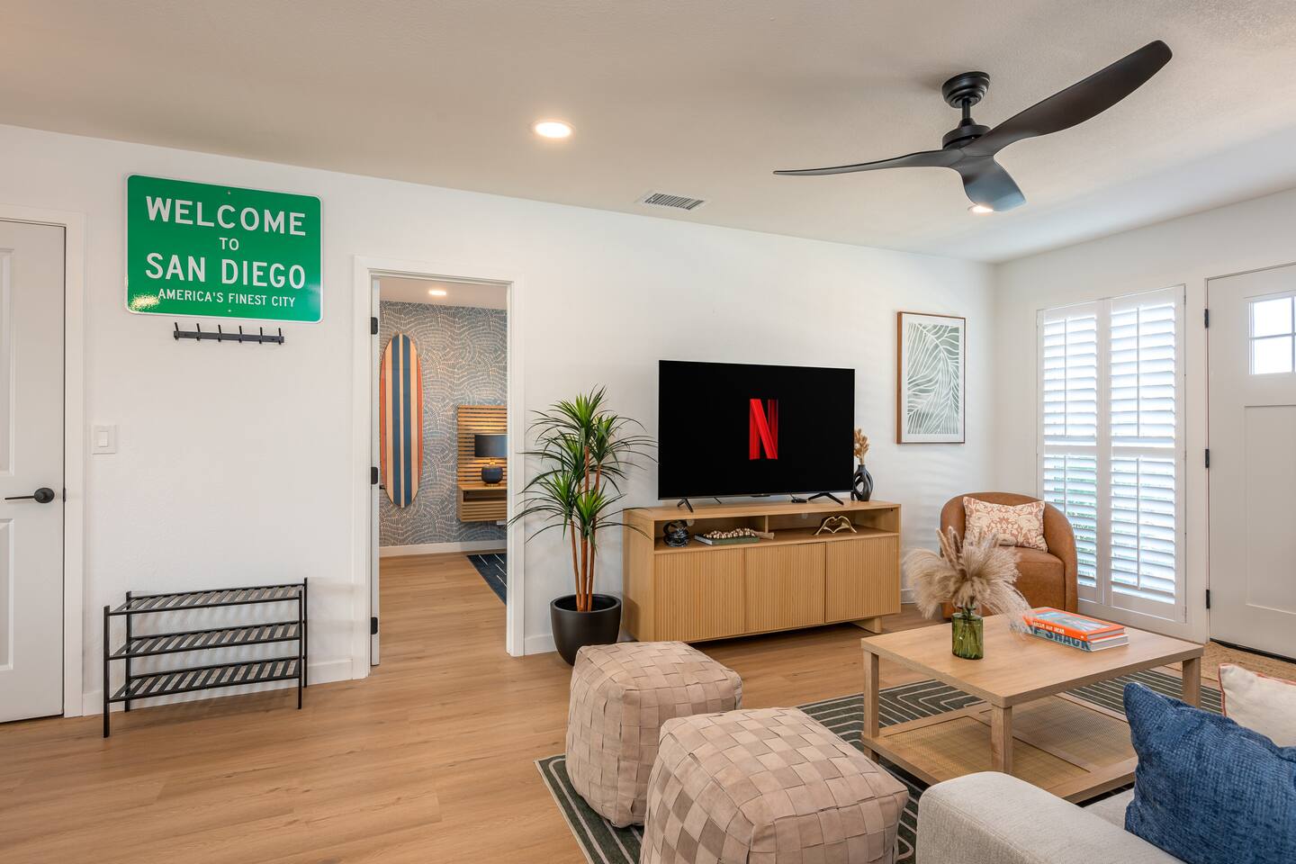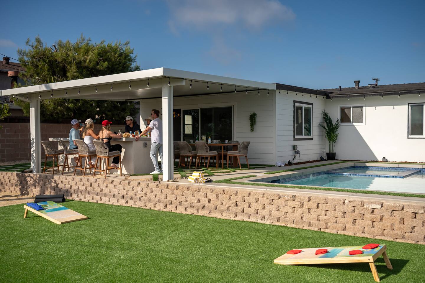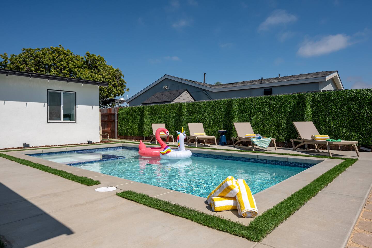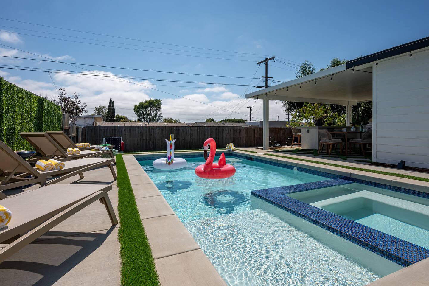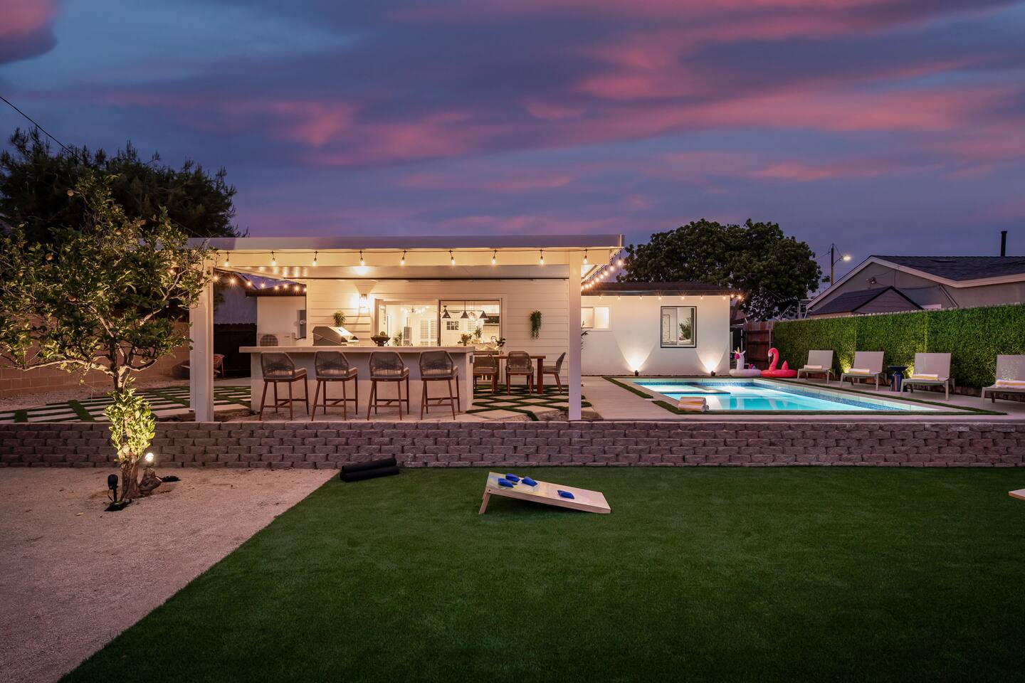Unwind in your heated pool and spa, perfect for families and groups. As the sun sets, gather by the fire pit under string lights for unforgettable evenings. Just minutes to Clairemont dining, shopping, and La Jolla beaches, this home offers convenience, style, and relaxation all in one place. Ideal for family getaways, retreats, and extended stays, this is your resort-style San Diego oasis — designed for comfort, connection, and California memories that last.