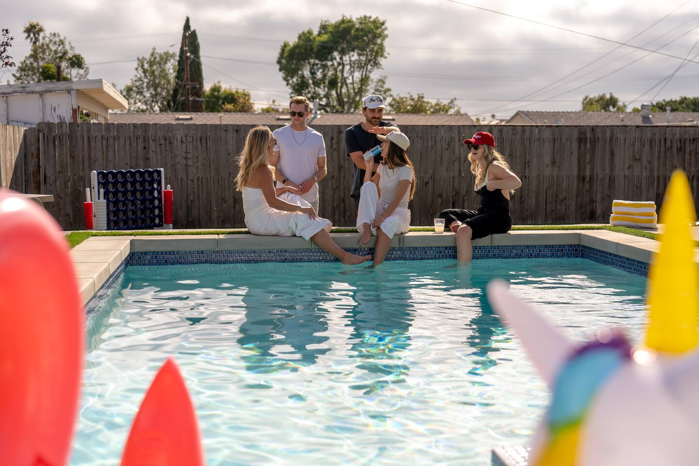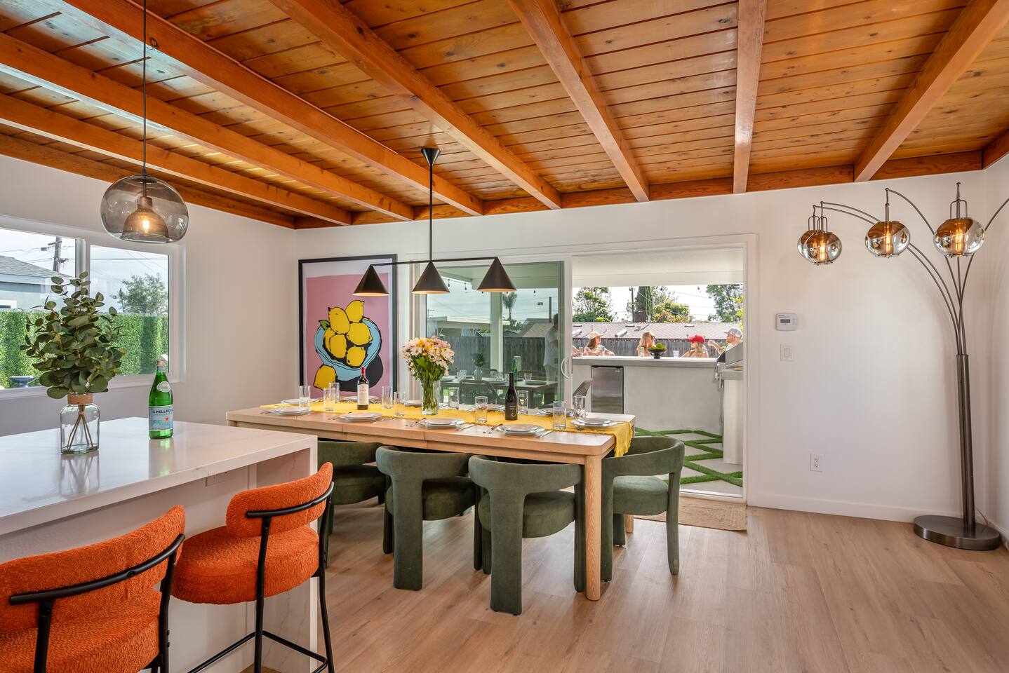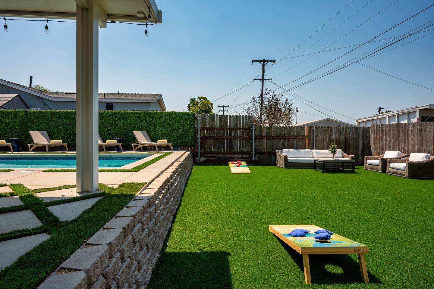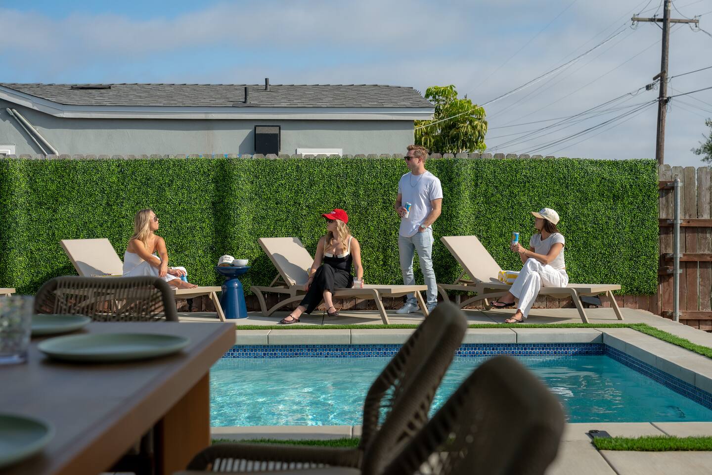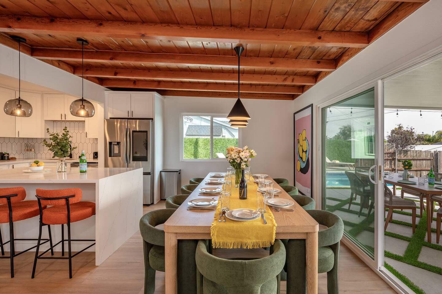 Unwind in your heated pool and spa, perfect for families and groups. As the sun sets, gather by the fire pit under string lights for unforgettable evenings. Just minutes to Clairemont dining, shopping, and La Jolla beaches, this home offers convenience, style, and relaxation all in one place. Ideal for family getaways, retreats, and extended stays, this is your resort-style San Diego oasis — designed for comfort, connection, and California memories that last.