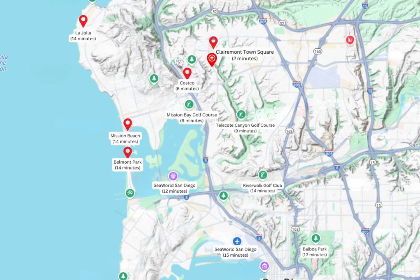 🚗 Located near major freeways like I-5 and SR-52, Gila Avenue offers easy access to Mission Bay, downtown, and beyond—whether by car, Uber, bus, or trolley. The area is walkable and bike-friendly, with parks and scenic paths close by. Clairemont Town Center is just a short stroll away for shopping, dining, and movies. We're so central that Uber and Lyft are budget-friendly options—no car, no problem! 😊