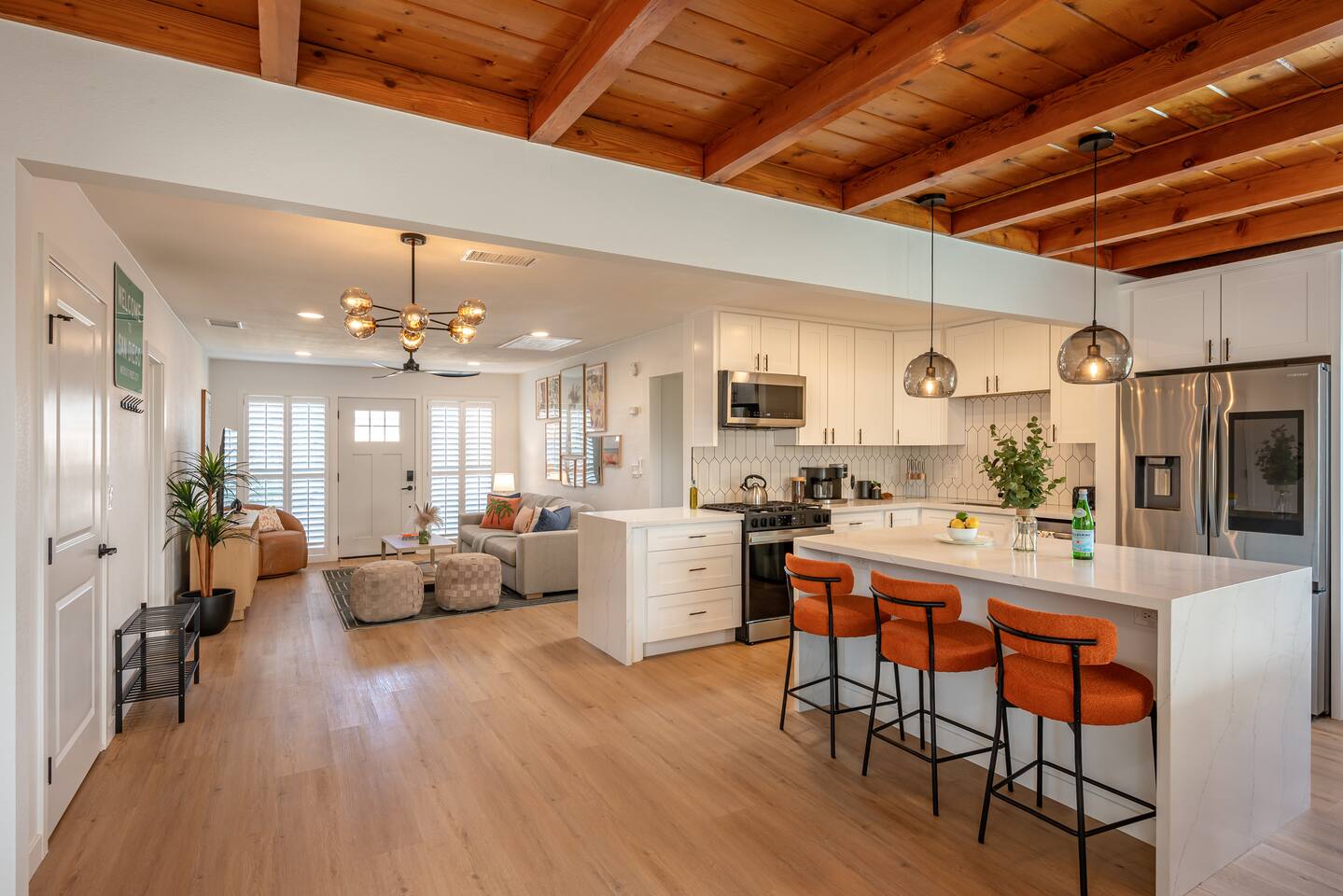 ENTRY: -A keypad is located on the front door. A personalized entry code will be provided to you prior to your stay. -Should you make a reservation within 24 hours of your intended check-in, please be aware that a 4 pm check-in may not be guaranteed due to our cleaning team's schedule and potential same-day turnovers. In such cases, the check-in time could be delayed until 6:30 pm. We recommend reaching out to us post-booking to confirm your specific check-in time. -Our home is in a peaceful residential community. While you're here to relax and have fun, please remember many of our neighbors live here full time. We kindly ask that you help keep the vibes respectful and quiet, especially in the evenings after 9 PM. -Enjoy the pool and hot tub, but swim at your own risk. Children under 14 must be supervised at all times — no exceptions. No diving, please. -The pool and hot tub are kept clean and chemically balanced through the use of chlorine. -The pool and hot tub are exclusively yours to enjoy from 8 AM to 9 PM. Hot tub instructions are in the house manual. Pool heating is available (for additional cost) - just let us know if you’d like it added. Please notify us 24 hours before your stay to allow us to set the temperature properly. Pool heating requests must be for the entire stay or a minimum of 3 consecutive days. -Our pool technician visits the property every Wednesday and Thursday to keep the pool in top condition. Trash service is also handled during this time to ensure everything stays clean and ready for you and future guests. - MINUT NOISE AND CROWD SENSOR: Please be aware that our property is equipped with a Minut noise monitor to ensure noise levels don't disturb neighbors. It alerts us to excessive noise decibel levels but does not record audio or conversations. Its purpose is to maintain a peaceful environment. -For Parking: Make sure to pull your car fully into the driveway. We just want to ensure your vehicle doesn’t risk receiving a ticket, as there have been several issued recently for cars with bumpers extending onto the sidewalk. -In accordance with the city ordinance, all outdoor lights must be turned off after 11:00 PM to avoid fines. -Any deliveries should not be sent to this address as there is no secure location they are delivered. Please deliver to a local Amazon locker if needed. -Security Camera For the safety and security of all guests, we have Ring cameras on the property. Cameras are positioned at the entry gates only — one at the front door and one at the back gate. They record video and audio when motion is detected. All outdoor common areas (such as the patio, pool and yard) are private and not monitored. All indoor areas are also completely private with no cameras of any kind. The cameras only cover the entry and exit points of the property.