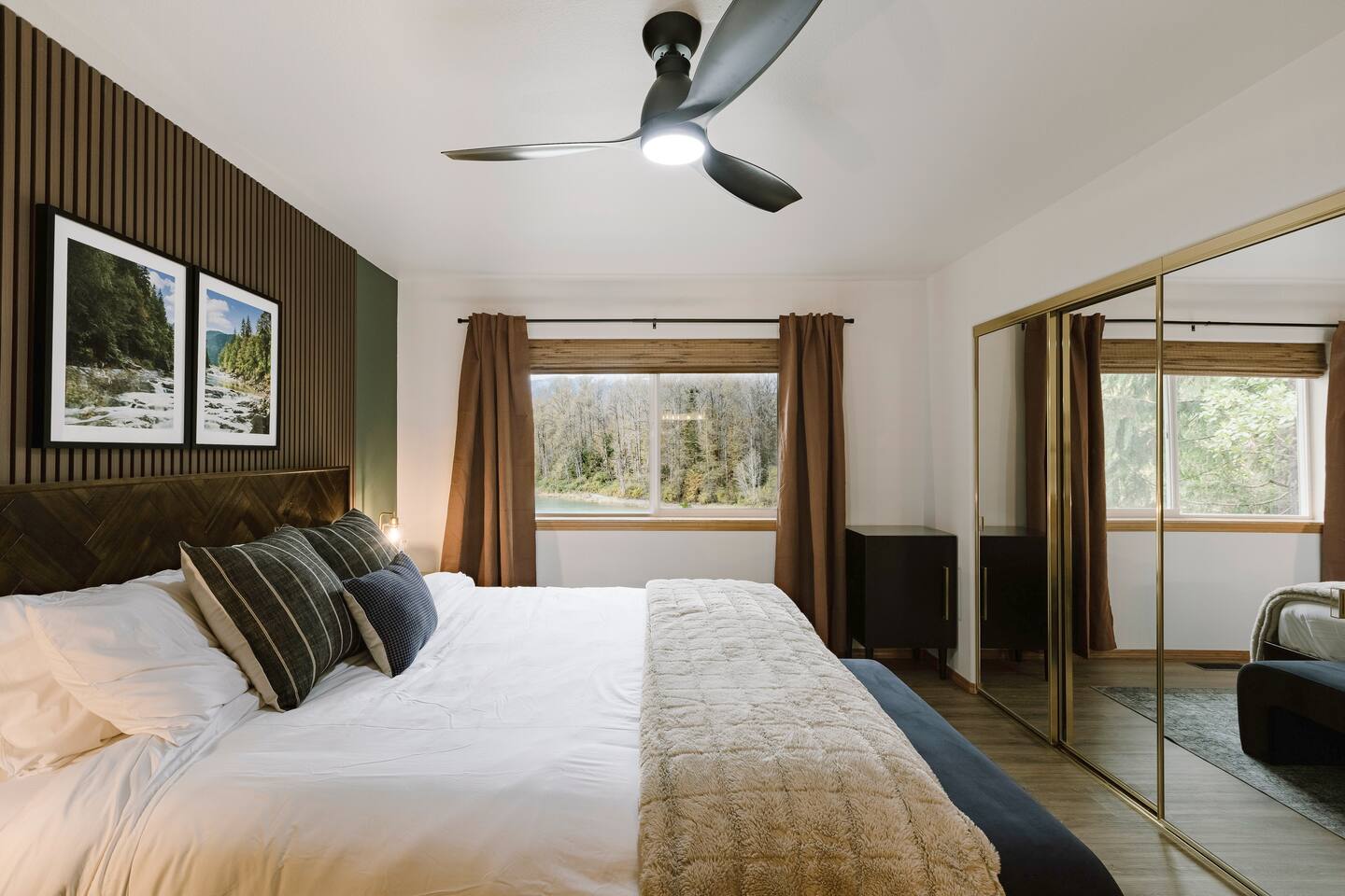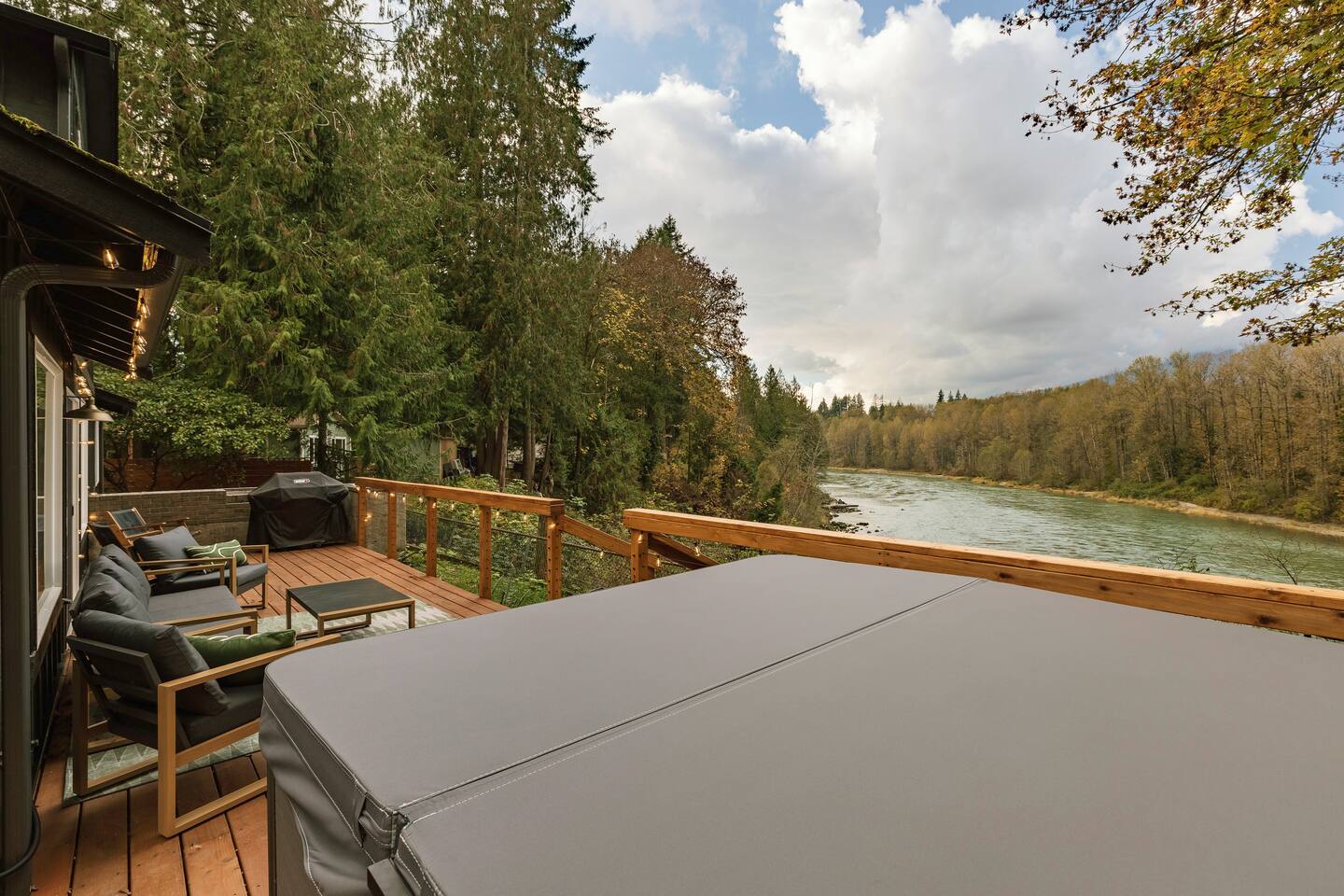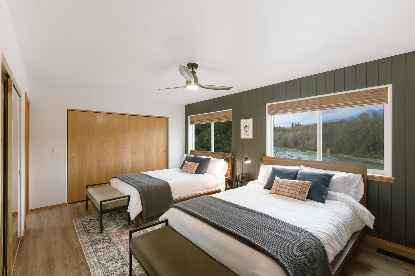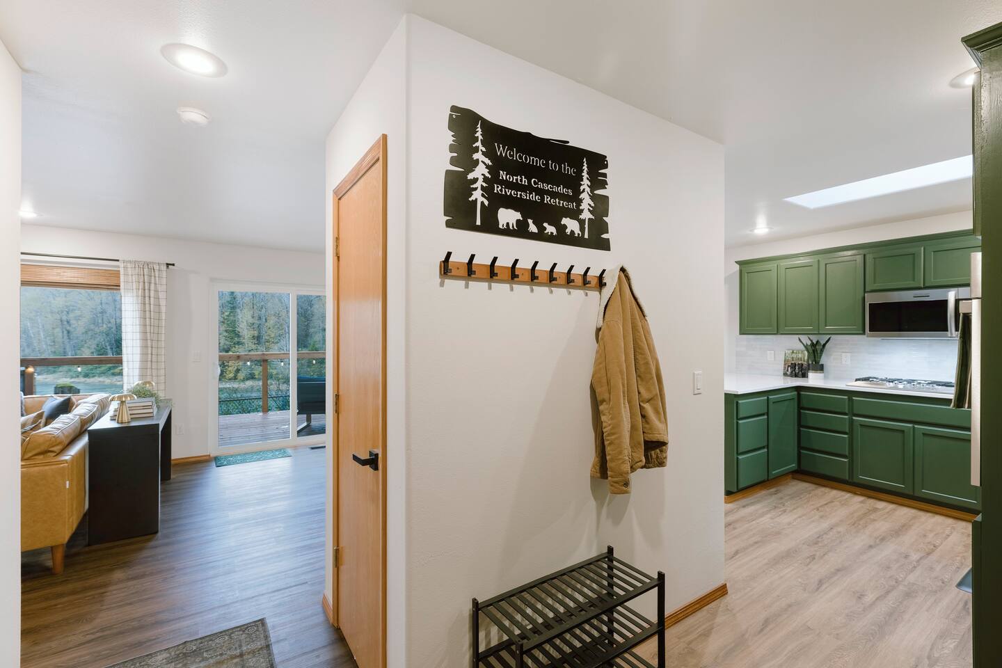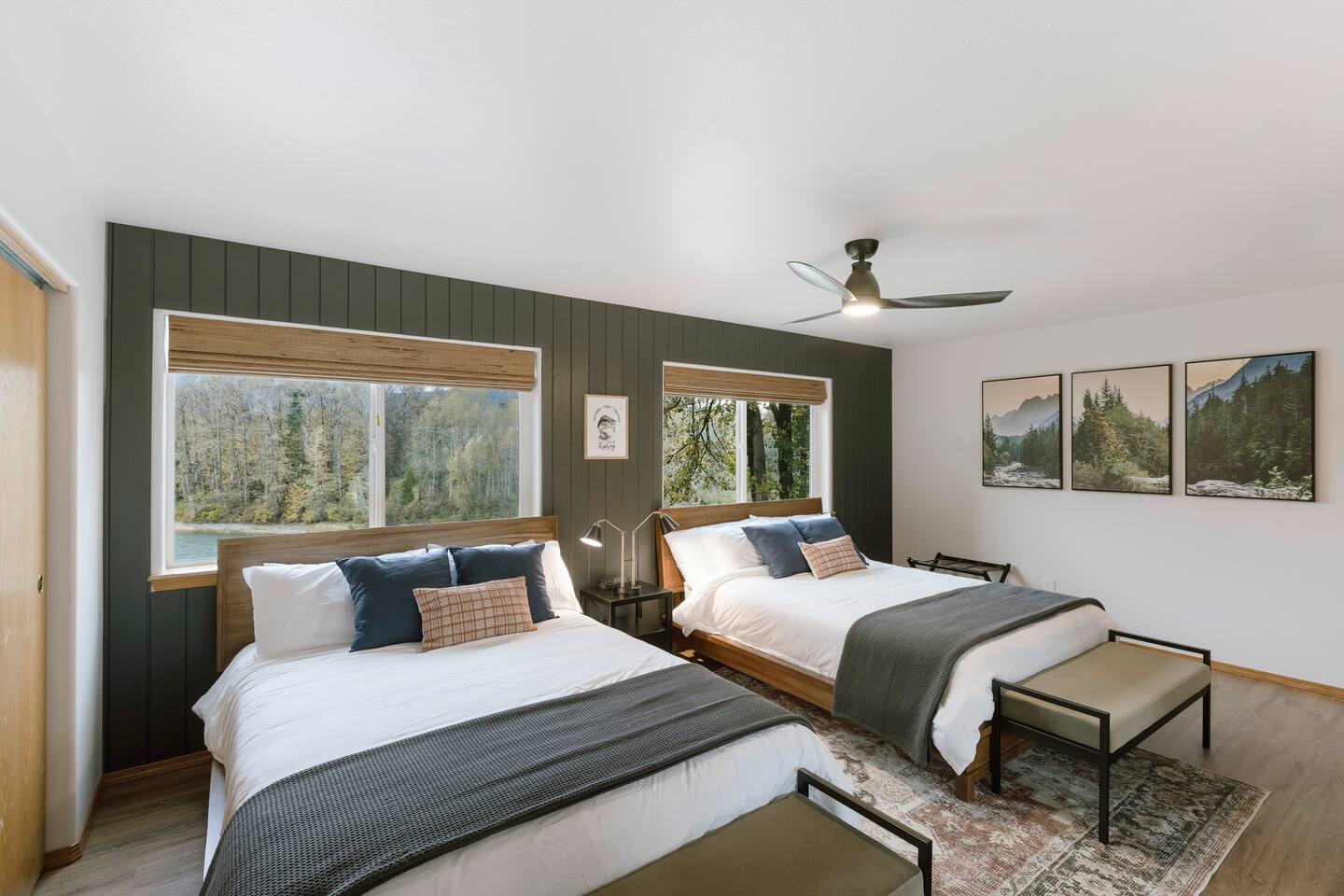 Step into the allure of this newly remodeled 3-bedroom, 2.5 bathroom home, where charm meets modern comfort. Explore the seamless fusion of coziness and convenience. Positioned off highway 20 perched above the Skagit River, 5 minutes from Red Apple Grocery Store, North Cascade's Perks Espresso & Deli, and Annie’s Pizza. Additionally, downtown Concrete is 10 minutes away, which is home to the Hub, a timely dive bar with the longest mahogany single-plank bar in the state of Washington. Inside you are greeted by a cozy ambiance, tasteful decor, and ample natural light. The well-appointed kitchen beckons culinary enthusiasts, while the inviting living spaces create a warm atmosphere for relaxation. The master suite is located on the first floor with its own private bathroom and river views. Upstairs, you'll find two bedrooms designed for tranquility, ensuring a restful night's sleep-blackout blinds equipped in every room. However, the real gem of North Cascades Riverside Retreat lies on the deck extending off the living room - walk outside and be mesmerized by views of the cedar-lined shores of Skagit River, and Mt. Baker. Whether you're sipping your morning coffee or enjoying a glass of wine under the stars, this space is your private oasis. The HOME 2-story family friendly cabin with keyless entry and driveway with the ability to accommodate 5 vehicles. The kitchen, dinning room, living room, half bath and master suite are on the main floor. 2 bedrooms upstairs are joined by the jack and jill bathroom. No Garage Access. All 4 mattresses are premium hypo-allergenic Memory Foam. Soaps are provided at no cost from Public Goods/Myers - They’re free of parabeans, sulfates, toxic chemicals, and unnecessary additives — pure and simple. >Although once on property it feels remote this cabin is located in a residential neighborhood. >Wood is not provided so if you would like to enjoy the fire pit, please pick up firewood before or during your stay. Firewood can be found at the nearby grocery store, and many of the gas stations along the drive. >This home has 2 steps leading to front door, several steps off the deck, and an entire flight to access the 2 other bedrooms. KITCHEN Premium Appliances ✦Fully Stocked with pots/pans ✦Full plateware with large/small plates and bowls ✦Glassware includes highball, rocks glasses and clear plastic wine glasses/drink glasses ✦Kureig Drip Coffee & K-Cup with Complimentary Coffee! ✦Tea Kettle Living Room ✦55" 4K TCL Smart TV(please note that it is NOT a cable TV) ✦Roku 4K ✦Table for up to 8 seating ✦High-speed WIFI (up to 1,000mbps) << LAYOUT OF OUR HOME >> 1st floor: - Kitchen - Living room Dining Room 1/2 Bath Master Suite - King Bed + Full Bathroom with Tub Washer/Dryer 2nd floor: -Bedroom #1 - King Bed + Desk -Bedroom #2 - 2 Queen Beds -Full Bathroom - Shower Deck/Backyard ✦Outdoor Seating ✦Wood Fire Pit ✦Hot Tub ✦BBQ Grill - Propane >>HOUSE GUIDELINES << >Rental Agreement<< The rental agreement must be signed before your arrival. >>AGE REQUIREMENT<< The minimum renter age is 25 years old for our property. >SAME DAY BOOKINGS < We're thrilled to welcome same-day I bookings! Just reach out to us in advance to confirm the available check-in time for such bookings. >ARRIVAL & DEPARTURE TIMES < Check-in is at 4 pm, and check-out is by 10 am. While early check-ins can't be guaranteed due to potential same-day check-outs, we'll inform you on the day if it's possible by request. Please note that a $100 fee applies for early check-in or late check-out, subject to availability. >SHOE-FREE ZONE < As you step inside, kindly remove your shoes to help maintain the pristine condition of our home. We appreciate your care! >PET POLICY< We welcome dogs only due to a cat allergy. Pets are NOT allowed on furniture, we provide a dedicated bed for them. We do charge $100 for the first dog and an additional $50 for every dog after. This is to ensure the space is deep cleaned for the next guest stay. >NO SMOKING POLICY < For the comfort of all guests, Smoking/Vaping or e-Cigarettes is strictly prohibited inside the house or within 20 ft of the premises. Any evidence of smoking will incur an additional violation fee of $1000 to deep clean the property. >PEACEFUL HOURS FROM 10 PM ONWARD < Respect our neighbors and maintain a noise-conscious atmosphere after 10 pm. Your consideration is valued! >NO EVENTS OR UNAUTHORIZED GUESTS < We request that you refrain from hosting gatherings or events in our residence. Let's preserve the cleanliness and respect the charm of our lovely home :). No unauthorized guests allowed! Guest access Our Guests have full access to the entire property, except for the garage, there will not be guest access. Other things to note ENTRY: -A keypad is located on the front door. A personalized entry code will be provided to you prior to your stay. IMPORTANT NOTE for HOT TUB: -To maintain a clean and pleasant spa environment it is very important to please shower BEFORE using the spa, or, trust us... it will get funky! The spa has a hard time breaking down lotions, oils, perfumes, etc. Additionally, please help us keep the spas tidy by disposing of trash properly and covering the hot tub with the dedicated cover when it’s not being used. Please note that an additional fee may be charged for excessive dirtiness. -We welcome dogs only due to a cat allergy. We do charge $100 for the first dog and an additional $50 for every dog after. This is to ensure the space is deep cleaned for the next guest stay. -The Cedar Grove Residential neighborhood is a special place for us with many year round residents, some of which make this place truly special and possible to share with you. Please respect our neighbors -Should you make a reservation within 24 hours of your intended check-in, please be aware that a 4 pm check-in may not be guaranteed due to our cleaning team's schedule and potential same-day turnovers. In such cases, the check-in time could