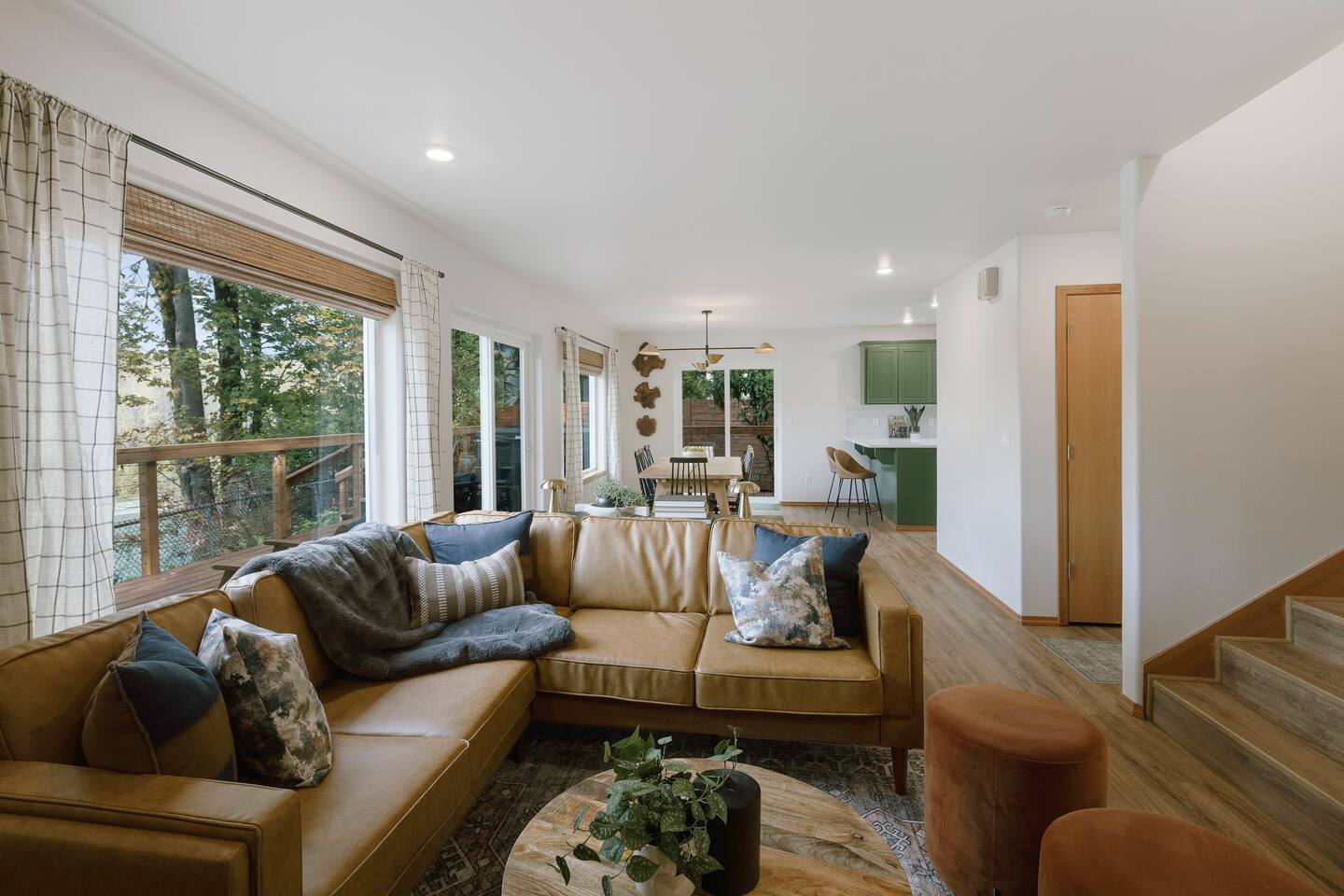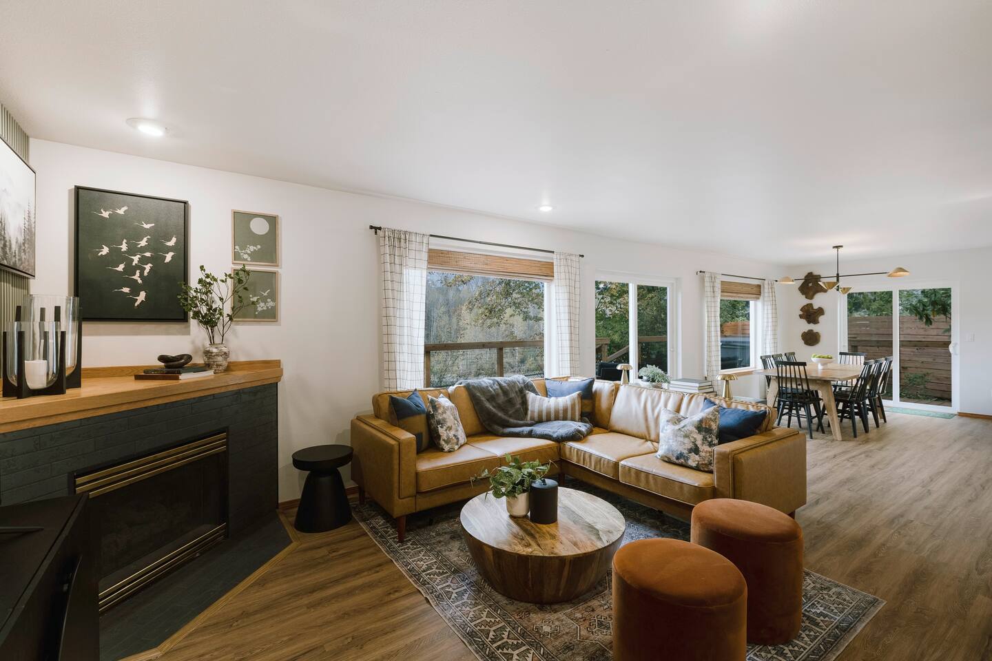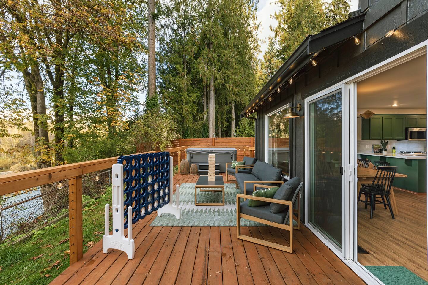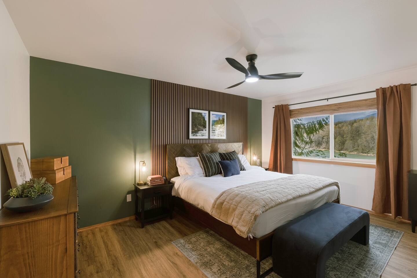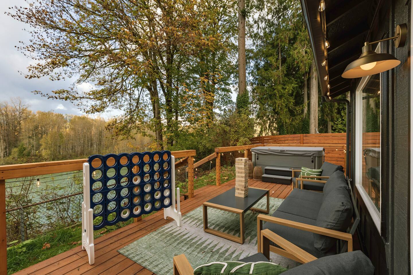 Step into the allure of this newly remodeled 3-bedroom, 2.5 bathroom home, where charm meets modern comfort. Explore the seamless fusion of coziness and convenience. Positioned off highway 20 perched above the Skagit River, 5 minutes from Red Apple Grocery Store, North Cascade's Perks Espresso & Deli, and Annie’s Pizza. Additionally, downtown Concrete is 10 minutes away, which is home to the Hub, a timely dive bar with the longest mahogany single-plank bar in the state of Washington. Inside you are greeted by a cozy ambiance, tasteful decor, and ample natural light. The well-appointed kitchen beckons culinary enthusiasts, while the inviting living spaces create a warm atmosphere for relaxation. The master suite is located on the first floor with its own private bathroom and river views. Upstairs, you'll find two bedrooms designed for tranquility, ensuring a restful night's sleep-blackout blinds equipped in every room. However, the real gem of North Cascades Riverside Retreat lies on the deck extending off the living room - walk outside and be mesmerized by views of the cedar-lined shores of Skagit River, and Mt. Baker. Whether you're sipping your morning coffee or enjoying a glass of wine under the stars, this space is your private oasis. The HOME 2-story family friendly cabin with keyless entry and driveway with the ability to accommodate 5 vehicles. The kitchen, dinning room, living room, half bath and master suite are on the main floor. 2 bedrooms upstairs are joined by the jack and jill bathroom. No Garage Access. All 4 mattresses are premium hypo-allergenic Memory Foam. Soaps are provided at no cost from Public Goods/Myers - They’re free of parabeans, sulfates, toxic chemicals, and unnecessary additives — pure and simple. >Although once on property it feels remote this cabin is located in a residential neighborhood. >Wood is not provided so if you would like to enjoy the fire pit, please pick up firewood before or during your stay. Firewood can be found at the nearby grocery store, and many of the gas stations along the drive. >This home has 2 steps leading to front door, several steps off the deck, and an entire flight to access the 2 other bedrooms. KITCHEN Premium Appliances ✦Fully Stocked with pots/pans ✦Full plateware with large/small plates and bowls ✦Glassware includes highball, rocks glasses and clear plastic wine glasses/drink glasses ✦Kureig Drip Coffee & K-Cup with Complimentary Coffee! ✦Tea Kettle Living Room ✦55" 4K TCL Smart TV(please note that it is NOT a cable TV) ✦Roku 4K ✦Table for up to 8 seating ✦High-speed WIFI (up to 1,000mbps) << LAYOUT OF OUR HOME >> 1st floor: - Kitchen - Living room Dining Room 1/2 Bath Master Suite - King Bed + Full Bathroom with Tub Washer/Dryer 2nd floor: -Bedroom #1 - King Bed + Desk -Bedroom #2 - 2 Queen Beds -Full Bathroom - Shower Deck/Backyard ✦Outdoor Seating ✦Wood Fire Pit ✦Hot Tub ✦BBQ Grill - Propane >>HOUSE GUIDELINES << >Rental Agreement<< The rental agreement must be signed before your arrival. >>AGE REQUIREMENT<< The minimum renter age is 25 years old for our property. >SAME DAY BOOKINGS < We're thrilled to welcome same-day I bookings! Just reach out to us in advance to confirm the available check-in time for such bookings. >ARRIVAL & DEPARTURE TIMES < Check-in is at 4 pm, and check-out is by 10 am. While early check-ins can't be guaranteed due to potential same-day check-outs, we'll inform you on the day if it's possible by request. Please note that a $100 fee applies for early check-in or late check-out, subject to availability. >SHOE-FREE ZONE < As you step inside, kindly remove your shoes to help maintain the pristine condition of our home. We appreciate your care! >PET POLICY< We welcome dogs only due to a cat allergy. Pets are NOT allowed on furniture, we provide a dedicated bed for them. We do charge $100 for the first dog and an additional $50 for every dog after. This is to ensure the space is deep cleaned for the next guest stay. >NO SMOKING POLICY < For the comfort of all guests, Smoking/Vaping or e-Cigarettes is strictly prohibited inside the house or within 20 ft of the premises. Any evidence of smoking will incur an additional violation fee of $1000 to deep clean the property. >PEACEFUL HOURS FROM 10 PM ONWARD < Respect our neighbors and maintain a noise-conscious atmosphere after 10 pm. Your consideration is valued! >NO EVENTS OR UNAUTHORIZED GUESTS < We request that you refrain from hosting gatherings or events in our residence. Let's preserve the cleanliness and respect the charm of our lovely home :). No unauthorized guests allowed! Guest access Our Guests have full access to the entire property, except for the garage, there will not be guest access. Other things to note ENTRY: -A keypad is located on the front door. A personalized entry code will be provided to you prior to your stay. IMPORTANT NOTE for HOT TUB: -To maintain a clean and pleasant spa environment it is very important to please shower BEFORE using the spa, or, trust us... it will get funky! The spa has a hard time breaking down lotions, oils, perfumes, etc. Additionally, please help us keep the spas tidy by disposing of trash properly and covering the hot tub with the dedicated cover when it’s not being used. Please note that an additional fee may be charged for excessive dirtiness. -We welcome dogs only due to a cat allergy. We do charge $100 for the first dog and an additional $50 for every dog after. This is to ensure the space is deep cleaned for the next guest stay. -The Cedar Grove Residential neighborhood is a special place for us with many year round residents, some of which make this place truly special and possible to share with you. Please respect our neighbors -Should you make a reservation within 24 hours of your intended check-in, please be aware that a 4 pm check-in may not be guaranteed due to our cleaning team's schedule and potential same-day turnovers. In such cases, the check-in time could
